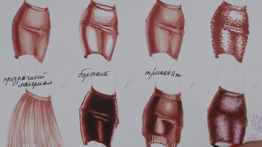 Содержание Материалы Шаг 1. Шаблоны Шаг 2. Матовая юбка Шаг 3. Глянцевая юбка Шаг 4. Юбка из денима Шаг 5. Юбка с пайетками Шаг 6. Юбка с прозрачным слоем Шаг 7. Бархатная юбка Шаг 8. Вязаная юбка Шаг 9. Юбка из ткани-букле Передавать фактуры материалов может быть непросто, но очень интересно, а, главное, полезно для освоения такого жанра, как fashion-иллюстрация. Чтобы процесс шел быстрее, нам предстоит нарисовать юбку и на примере разнообразных текстур на этой одежде понять принцип изображения ткани...