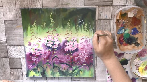 Иван-чай акварелью | как нарисовать вечерний луг /поляну с цветами #иванчай #акварелью #поляна