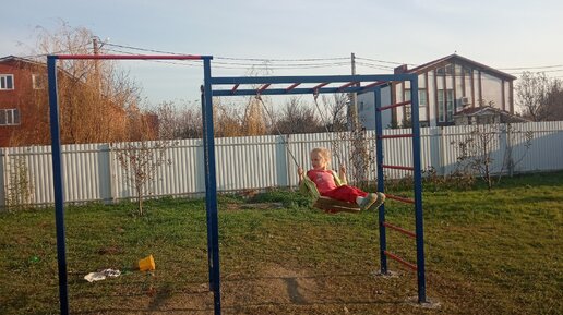 Моя младшая дочь в 5 лет не умеет раскачиваться на качелях, всегда просит "Мама, покачай." Как так получилось? Она видит эти качели раз в месяц, нет у нас в деревне детских площадок. Я знаю только две (!) площадки: на площади у Дома Культуры и около стадиона. Если первая еще более или менее насыщенная, там и качели, и горка, и лазалка есть, то у стадиона - древняя горка и железная карусель, вот и все. Есть еще какие-то качели и лазалки во дворах немногочисленных многоквартирных домов. Но в пешей доступности от нашего дома нет ни одной общедоступной, пусть и самой завалящей качели...