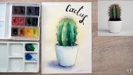 Как нарисовать милый, но колючий кактус? Видеоурок рисования акварелью