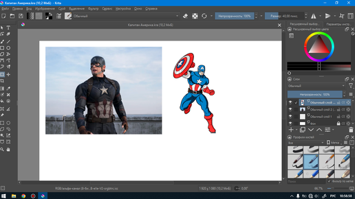 Нужно нарисовать Капитана Америку для обложки одного канала в ВК. Но перед этим надо бы провести подготовительную работу Этих вполне достаточно За основу взял костюм на фото из фильма. Очень помогает инструмент "Горизонтальное отражение"...