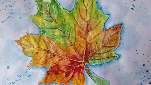 Как нарисовать ЛИСТ КЛЁНА с построением пошагово | Рисуем кленовый лист акварелью