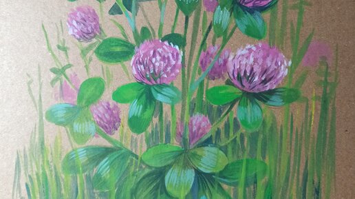 Клевер, как нарисовать гуашью на крафтовой бумаге.