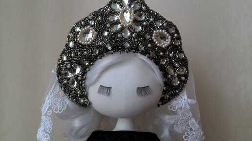 Кокошник может быть любой формы и украсить его можно по разному. Вырезаем из фетра форму и обтягиваем тканью. На лицевой стороне выкладываете или рисуете рисунок. Я использовала стеклярус, бусины и стразы. Изнаночная сторона. По краю пришиваем проволоку для каркаса. Можно пришить вуаль. Закрываем не красивую изнаночную сторону...
