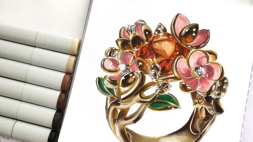 Как нарисовать кольцо с драгоценными камнями спиртовыми маркерами? || Пошаговый урок