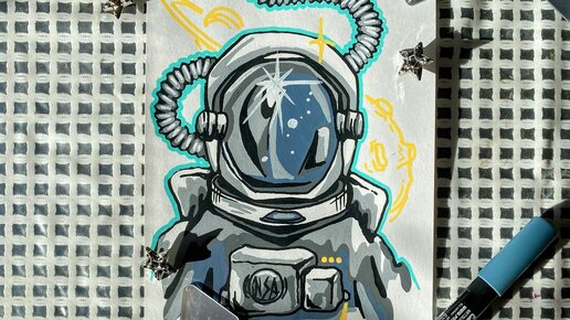 Этап 1. Композиция Мы будем писать «портрет» астронавта, поэтому посередине листа вертикально отмечаем ось симметрии, от нее удобно строить схожие элементы. Скафандр состоит из множества элементов, которые могут различаться между собой, главное это стекло-экран , который обрамлен специальной тканью и крепежами. На груди можно добавить аппарат, сзади может проглядывать кислородный баллон, а для динамики я решил добавить и специальный рифленый трос, изгибающийся позади фигуры. Этап 2. Построение Делая...