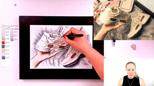 Жанр этой работы – fashion-иллюстрация. Вы узнаете, как нарисовать кроссовки известного модного бренда Gucci. Мы возьмем не все предметы с референса, чтобы оставить и усилить акцент именно на обуви. Не бойтесь сложного ракурса: преподаватель подробно расскажет, как передать этот разворот и выполнить рисунок интересно и выразительно...