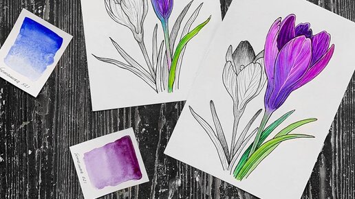Привет, Друзья! Я решила создать подборку уроков, которые вышли на моем канале. Может быть вы их еще не видели? Как нарисовать цветы акварелью? Вам понадобится: -Акварельная бумага -Акварель -Кисточка...