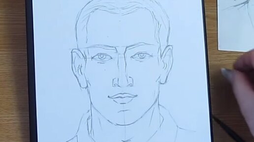 Рисование портретов — дело достаточно непростое, требующее внимания, аккуратности и точного соблюдения пропорций. И при помощи данного урока мы научимся тому, как нарисовать портрет человека. Начать стоит с азов — изобразим овал лица и разделим его на три части. Внимание — верхняя точка этих трех фрагментов должна находиться чуть ниже верхней точки самого овала — там будет линия роста волос. В местах разделения надо провести три горизонтальные линии, а потом — еще две. Одна будет находиться чуть ниже центральной отметки, а еще одна — чуть ниже нижней...