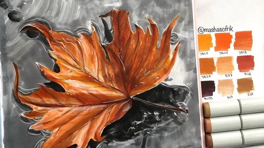 Как нарисовать осенний лист просто спиртовыми маркерами? Пошаговый урок