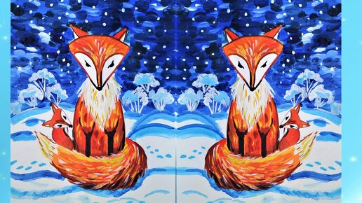 Предлагаю нарисовать очень милый зимний сюжет, а заодно поучиться рисовать лису. Лиса обняла своего лисенка хвостом.