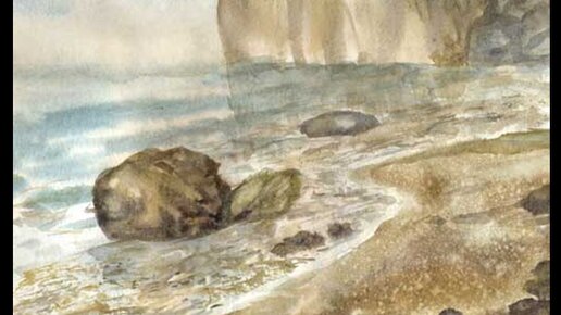 Как нарисовать море акварелью? Давайте разбираться… Опыт рисования воды с помощью акварельных красок уже был: река, в которой зеркально отражалось небо. Сегодня мы попробуем написать море. Отличие состоит в том, что на море есть волны; соленая вода имеет бирюзовый оттенок. Она не всегда точно повторяет небо. Хотя это может зависеть от погоды. В работе мы будем использовать следующую цветовую гамму: сепия, красный краплак, голубой, охра, желтый, ультрамарин. По желанию можете включить другие оттенки синего...
