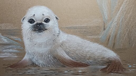 Морской котик как нарисовать пастелью на крафтовой бумаге.
