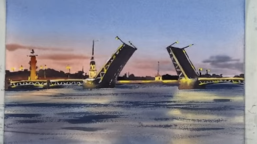На новом бесплатном уроке Дарьи Куцаевой вам предстоит нарисовать мост и потренировать сразу несколько эффектов в акварельной живописи. Мы будем работать и по-мокрому, и по-сухому, делать красивые лессировки и градиенты, осваивать рисование кистью плашмя и другие интересные приемы. При этом сам сюжет с изображением разводного моста Санкт-Петербурга совсем не сложен даже для начинающих акварелистов...
