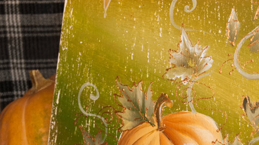 Осень. Прекрасная, немного грустная и всегда волшебная. Ее цвет как игривый яркий костер перед сдержанностью и мудростью зимы. Земля полна урожая и щедро делится с нами своими плодами. Что может быть прекраснее роскошной королевы-тыквы, гроздьев винограда, корзины яблок, лукошка грибов… да разве всё перечислишь! Давайте нарисуем милые осенние тыковки. Для росписи деревянной доски в технике двойной мазок нам понадобятся: - деревянная разделочная доска, свечка, наждачная бумага, синтетические кисти,...