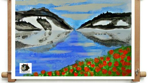 Рисуем озеро Байкал поэтапно с детьми. Монотипия