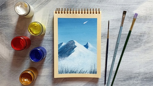 Горы гуашью пошагово. Пейзаж для начинающих. Видео