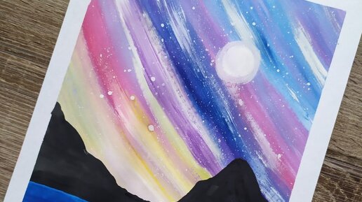 Как нарисовать Горный Пейзаж на Фоне Звездного Неба? Просто Рисуем Горный Пейзаж в Круге.