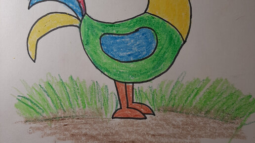 Приветствую дорогих читателей на своем канале! Чем занять ребенка в этот зимний темный вечер? Предлагаю вам порисовать! Сегодня нарисуем красочного петушка. Рисуется он просто. Нам понадобится лист бумаги формата А4, черный фломастер или маркер с тонким стержнем, восковые карандаши или мелки. Начинаем рисовать с головы. Далее рисуем , бородку и глазик. Далее рисуем гребешок-и голова готова. Теперь приступаем к туловищу. Рисуется оно тоже просто. Теперь рисуем крылышко и две лапки. Теперь пришло...