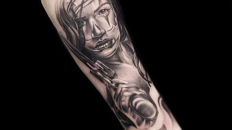 Тату с пистолетом. Паф!