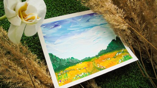 Как нарисовать "Летнее поле" акриловыми красками на картоне поэтапно