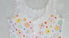 Вот незадача: белая маечка случайно попала в стиральную машину к тёмному белью и на память об этой неприятности получила хаотичные пятна. Вывести их не помог даже отбеливатель. Маечка была совсем новая, один раз только и прошлась в ней хозяйка, а потому выбрасывать не стала, а предприняла мозговой штурм. Его результаты на фотографии: на майке расцвела цветочная поляна. Воспользоваться этой идеей предлагаем всем, кто испачкал любимую светлую вещь или просто хочет сделать обычную белую майку яркой и запоминающейся...