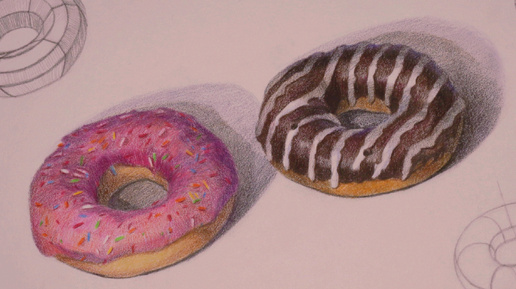 Как нарисовать пончик карандашом и скетч маркерами | Милый рисунок поэтапно и легко