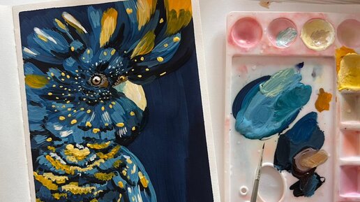 Привет всем! Сегодня предлагаю нарисовать чудесного «Синего попугая» гуашью. Он подойдет как для детей от 8 лет и старше, так и для начинающих взрослых людей. Для работы приготовьте следующие материалы: · Бумага А4 (ватман) или скетчбук; · Гуашь (не менее 12 цветов), важно, чтобы гуашь была по консистенции как сметана. Если краски сухие и твердые – рекомендую их заменить на новые. Иначе не получите удовольствие от процесса рисования и конечный результат вас может не обрадовать. · Кисти разного размера (мягкая синтетика и щетина, № 1-12); · Палитра и баночка с водой; · Влажные салфетки...