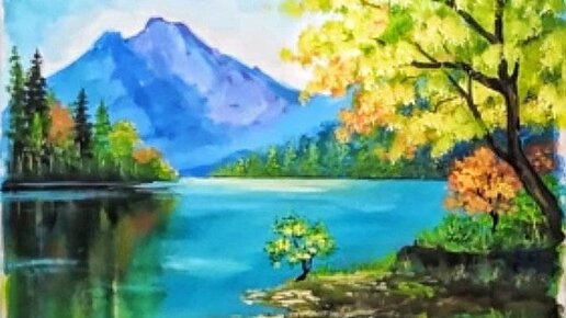 Дорогие начинающие художники, сегодня я предлагаю вашему вниманию пошаговый мастер-класс по акриловой живописи, рисуем осенний пейзаж и озеро. Сохраняйте статью в закладки и рисуйте по данному руководству и делитесь ссылкой с друзьями. Что вам понадобится для работы: 1. Акриловые краски или гуашь 2. Картон или холст ( у меня картон) 3. Кисти разных размеров 4. Стакан с водой 1 этап Намечаем линию горизонта синей краской и тонкой кистью. 2 этап Той же краской и кисточкой, прорисуем основные элементы композиции...