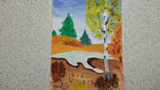 Очередной рисунок для детского сада: осенний пейзаж, который можно нарисовать даже кривыми руками