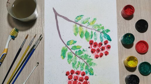 🍂🌿🍂Рябина. Рисунок гуашью используя ватные палочки. 🖌🌈🎨Поэтапный видео урок по рисованию для начинающих.