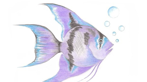 Начнем урок как нарисовать рыбку с построения туловища. В основе формы туловища лежит круг поэтому, начертив его, вы сможете легко нарисовать форму туловища рыбки. Далее нарисуем глаз, жаберную крышку и рот. Переходим к рисованию хвоста рыбки. Обратите внимание, что по высоте он такой же как и туловище. Хотя аквариумные рыбки бывают абсолютно разных форм и поэтому, вы можете нарисовать хвост больше туловища – это не будет ошибкой. Нарисуйте далее плавники — крылья аквариумной рыбке. Их два – один сверху, другой снизу...