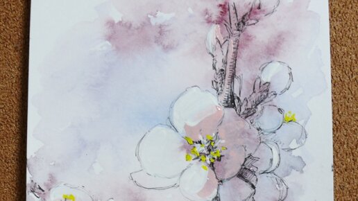 Приветствую любителей живописи! Сегодня я хочу показать, как можно быстро, просто и стильно нарисовать красками ветку цветущей сакуры. Для нашего скетча нам понадобится бумага для акварели, акварельные и акриловые или гуашевые краски и тонкий черный маркер или линер. 1) Сначала делаем карандашный набросок. Сразу скажу, не старайтесь карандашный набросок делать еле заметным, т.к. сверху мы будем все заливать цветом, и после высыхания карандаш будет видно плохо. 2) Следующим этапом чистой водой смачиваем бумагу...
