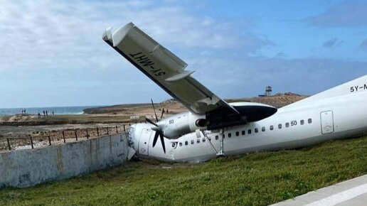 Читаем: "На опубликованных кадрах с места происшествия видно, что самолёт Fokker 50 кенийской авиакомпании Silverstone Air Service получил значительные повреждения...