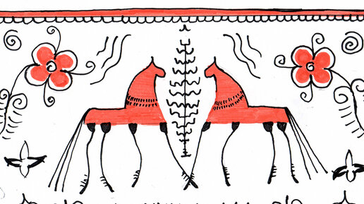 Мезенская роспись сильно выделяется на фоне других русских направлений росписи. Наверное, это потому, что она похожа на современное искусство. Образовалась она в низовьях реки Мезень в Республике Коми. Рисуется эта роспись двумя красками: красной и черной. В отличие от многих других русских росписей главными «героями» у неё служат не птицы, а лошади и олени. Как начать её рисовать? Вообще роспись рисуется на дереве, но так как не у каждого есть такая возможность, я предлагаю попробовать рисовать на бумаге...