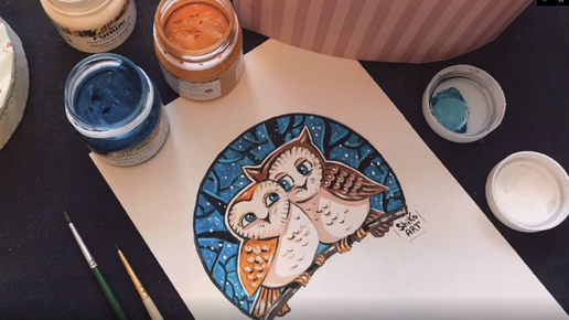 Рисуем очаровательных совушек гуашью TAIR вместе с художницей Натальей Васильевой-Талагаевой https://www.instagram.com/shikoart/ Шаг 1. Делаем карандашный набросок. Шаг 2. Рисуем основной цвет сов. Совушку делаем более светлого оттенка, а филина более насыщенно коричневого. Шаг 3. Смешиваем охру и белила и тонкой кистью намечаем оперение. Местами используем чистые титановые белила. Шаг 4. Отводной кистью прорисовываем контур, а так же расскрашиваем глаза...
