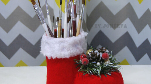 Здравствуйте! Сегодня покажу вам достаточно простой мастер-класс по созданию Новогоднего сапога из обычной пластиковый бутылки. Такой сапог можно сделать из бутылки любого размера. Сапог из большого размера можно использовать как предмет декора в котором можно хранить какую-нибудь мелочь или наполнить ее небольшими подарками и сладостями и положить под елку. Сапожок из маленькой бутылки можно использовать как карандашницу и украсить таким образом свой рабочий стол или поставить на туалетный столик в качестве стаканчика для кистей...