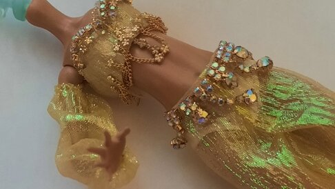 Здравствуйте. Я продолжаю работать над созданием кукольной версии Шахерезады. Предыдущая статья здесь: Статья будет сумбурной, потому что делаю в этот раз всего понемногу. Пошила, обувь начала делать, потом вдохновение на украшения посетило. Покажу что готово на сегодняшний день. К тюрбану и топику я сшила рукава и шальвары из органзы. Девушка у меня приличная, поэтому под шальварами у нее трусишки из атласа. Надеваются они вместе с шальварами, пришиты к ним по поясу. Застегиваются сзади на кнопочку...