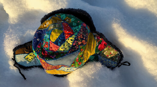 Шапка-ушанка испокон веков символ Руси, снежной зимы и традиционного стиля. Мне попалась великолепная ушанка из овчины, пошитая для российской пoлиции и вот кропотливо-медитативным, вышивально-песенным лёгким движением руки она преобразилась в арт-объект. Сошлись в едином предмете древнейшие сущности — русский треух и лоскутное шитьё. Сейчас я вас научу декорировать шапку, а вы уж сами сможете повторить эти приёмы на любой поверхности — обшить лоскутной мозаикой штаны, куртку, платье, да хоть валенки!...