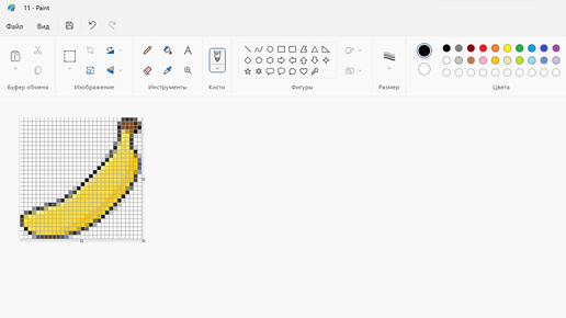 Ниже будет подробно рассмотрен процесс создания схемы для вышивки крестом по любому изображению, в программе Paint. Paint установлен абсолютно на всех версиях ОС Windows, и отличается лишь интерфейсом. 1. Скачиваем изображение, я выбрал рисунок банана. 2. Правой кнопкой мыши нажимаем по иконке изображения. Открыть с помощью - Paint. 3. Наша картинка открылась. Теперь нам нужно включить отображение линий сетки. Для этого нажимаем на кнопку "вид", в верхней части экрана и ставим галочку напротив линий сетки...