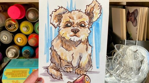 Этап 1. Композиция Рисунок мы начинаем с карандашного эскиза. Щенки бывают разные, я выбрал пушистого двортерьера. Начинайте построение с общих форм, выискивая правильные пропорции. Самое важное это поза щенка: малыш сидит мордочкой к нам, вздернув ухо. Рядом пририсуйте его любимую игрушку. Этап 2. Построение Для вашего удобства нужно обрисовать эскиз, уточняя мелкие детали. Щенок взъерошенный, поэтому изъедайте ровных и приглаженных линий. Постарайтесь передать игривое настроение на мордочке. Работать мы будем в формате скетчинга, но необычного...