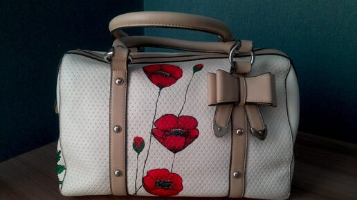 Вторая жизнь старой сумке. Сумка за два года не износилась, но уже надоела, а выкинуть жалко и решила обновить. Рисуем маки. Как нарисовать мак поэтапно. Поверхность обезжириваем водкой или спиртом. Простым карандашом рисуем контур. Карандаш стирается ватной палочкой или ластиком. Акриловой красной краской рисуем листья цветка...