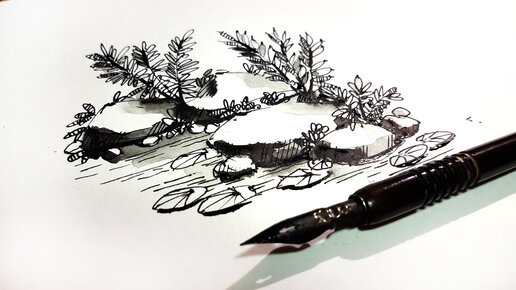 Как нарисовать камни-простой способ-перо, тушь, кисть. Ландшафтный скетчинг (видео)
