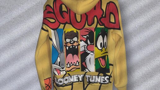 Одна из моих работ, которую я рисовала себе! История такая… эта была моя любимая желтая Толстовка, но однажды я пролила на неё что-то вроде кофе или ещё что-то и оно не отстиралось. Я недолго думая решила, что-нибудь нарисовать. И тогда как раз должен был скоро выйти мультик Космический джем 2! Я как настоящий любитель баскета, конечно же видела первую часть фильма, поэтому решила сделать принт по его мотивам. Очень долго возилась с эскизом.. не люблю делать что-то себе именно поэтому...