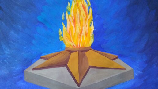 Вечный огонь — постоянно горящий огонь, символически знаменующий собой торжественную память народа о павших героях, борцах за свободу, за честь Родины. С самых древних времен огонь много значил для человека. Огонь — это не только возможность согреться и приготовить пищу. Огонь — это символ очищения, символ единения, символ души и символ памяти. Сегодня я предлагаю Вам нарисовать "Вечный огонь". Нам потребуется: Начинаем с наброска. Размещаем рисунок на листе. Прорисовываем рисунок. Переходим к цветовому решению...