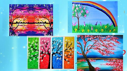 Друзья, вы узнаете, как нарисовать цветущие весенние деревья в разной технике акварелью, гуашью, ватными палочками, пластиковым пакетом. А еще мы легко рисуем отпечатками.