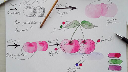 Как нарисовать вишню акварелью поэтапно. Акварель для начинающих