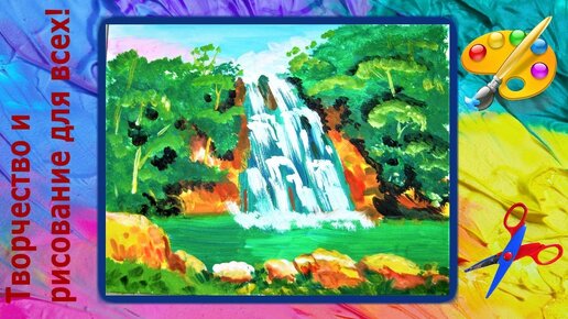 Как нарисовать водопад за 10 минут. Рисуем лето.
