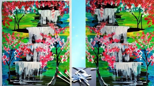 Друзья, вы увидите, как пошагово нарисовать водопады гуашью, масляной пастелью и в разных техниках. Совсем простые пейзажи с водопадами для школьников и начинающих. И даже ватными палочками. Есть и посложнее рисунки...