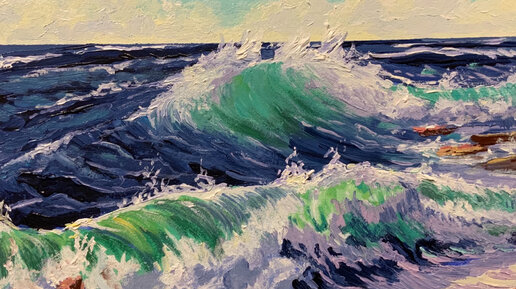 На этот раз, для создания своей новой картины, предлагаю зайти на поприще художников-маринистов и нарисовать красивые и динамичные морские волны. Мы с вами поэтапно разберем то, как нарисовать воду, эффектное движение волны и брызги пены с использованием светотени и цветовых растяжек - без особых трудностей для начинающих и не только. Рисовать будем акрилом в технике “а ля прима” Материалы для работы: Морская Волна, пошагово рисуем